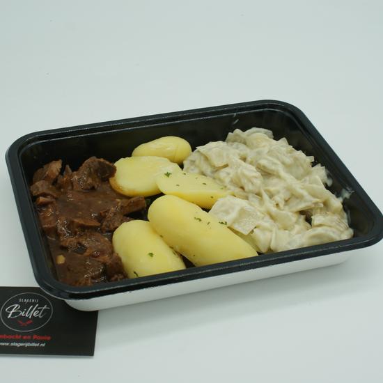 MENU HACHÉ MET GEKOOKTE AARDAPPEL, WITLOF
